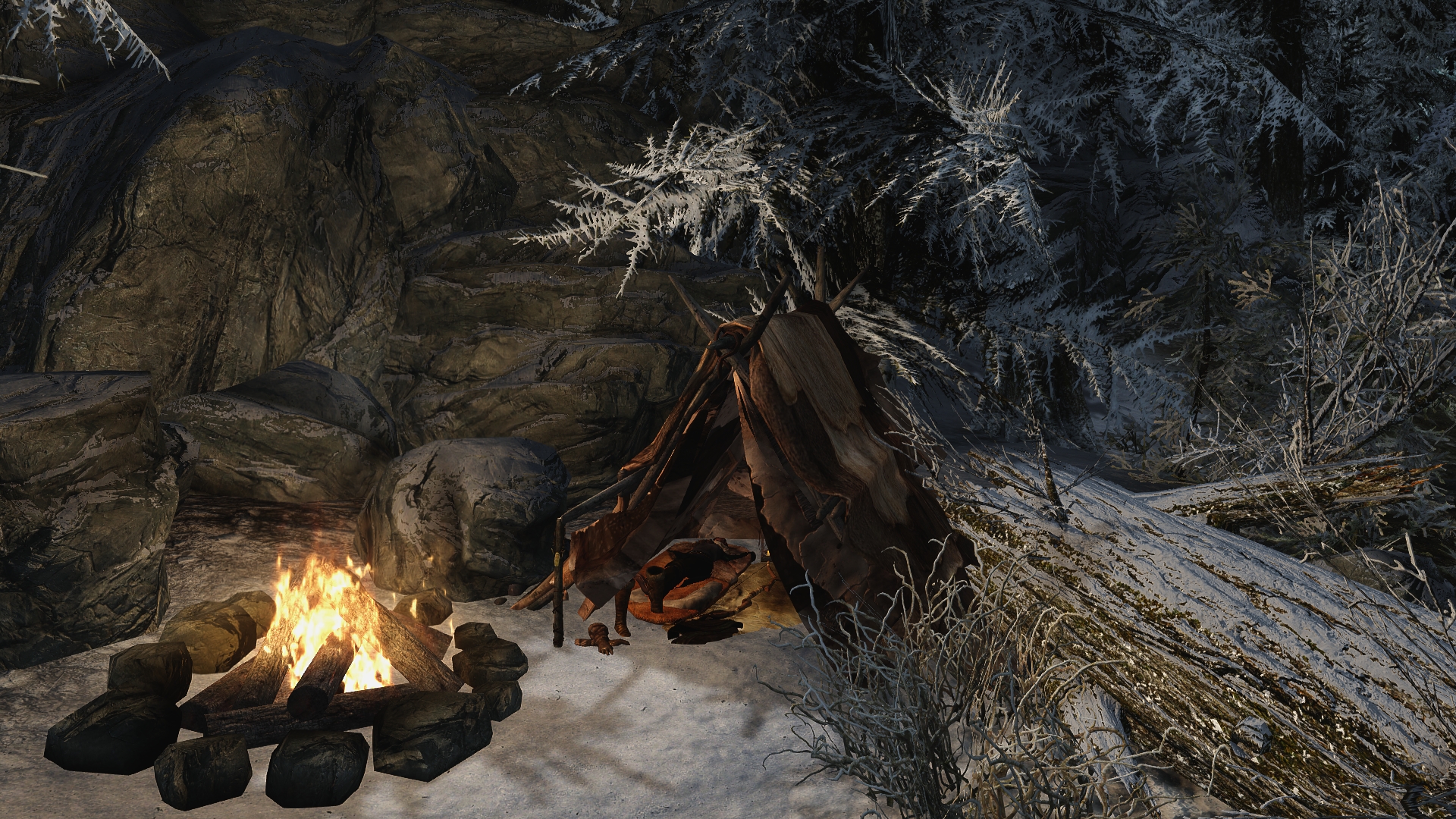 So I offered to start up a blog with a new character to demonstrate what I was talking about. I let my friend choose the race and starting conditions of my character using the Alternate Start: Live Another Life mod. He chose a Breton who was “attacked and left for dead”, which starts your character in a random location anywhere on the map with no armour, no weapons, no money, and very little food. The game started me in one of the coldest areas in Skyrim, which with my mods can be absolutely fatal as it’s quite possible to simply freeze to death.