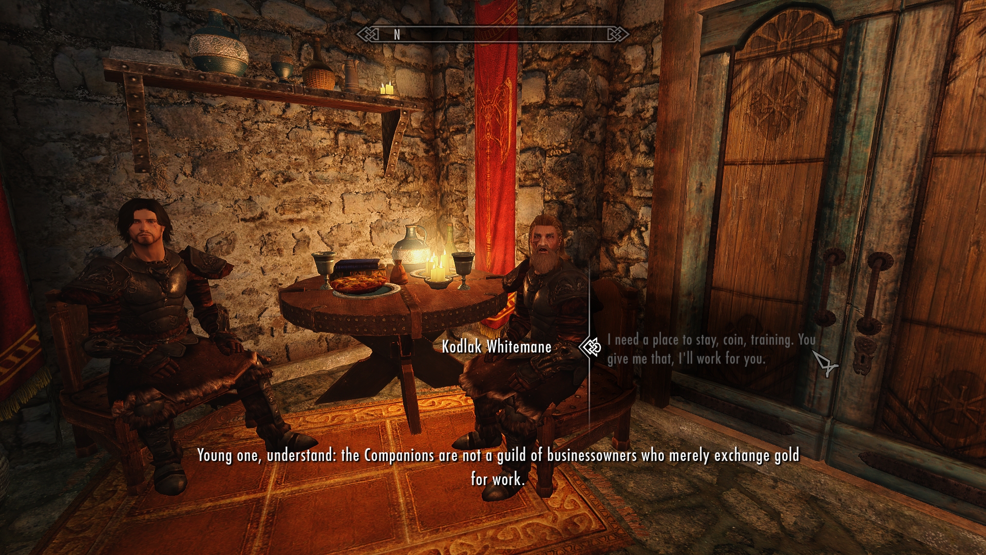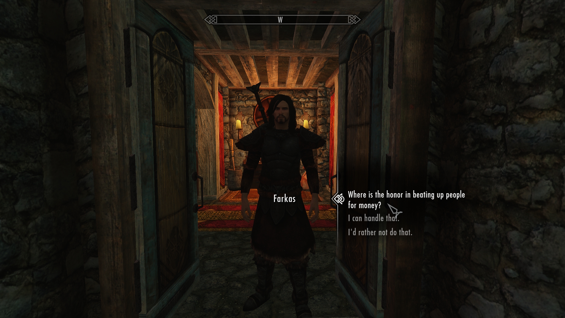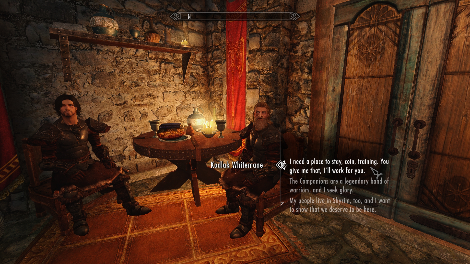 As I stand there gobsmacked by meeting Farkas’ near-twin, Kodlak acknowledges my presence. Now to totally impress their socks off! I take the plunge.
