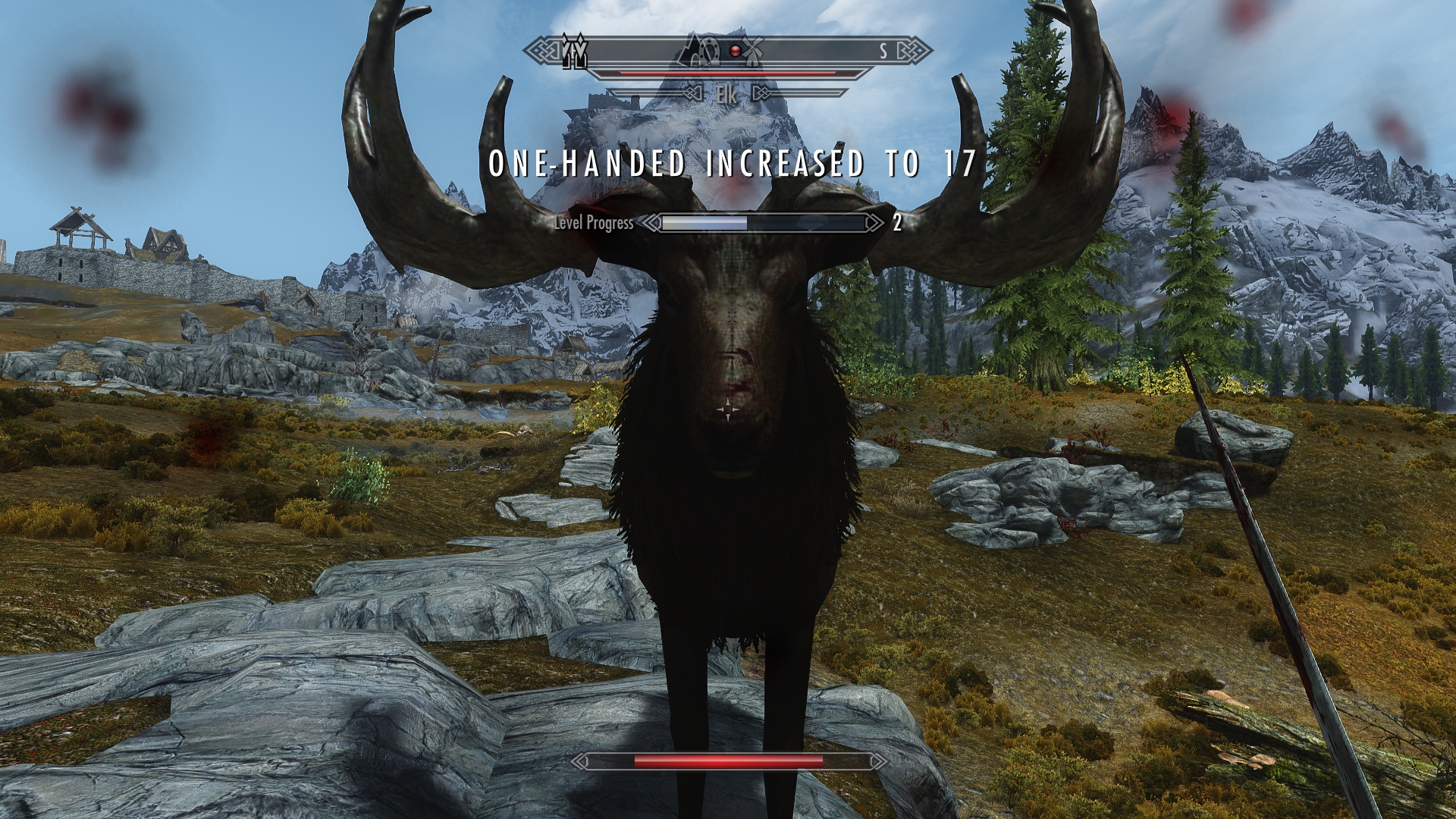 This moose is clearly a veteran fighter. His timing is perfect and his technique is exemplary. I’m in real trouble here. My sword isn’t making much headway as it’s mostly being deflected by antlers and hooves. Running away isn’t an option as he’s a whole lot faster than I am. Looks like I’m gonna be fertilizer after all.