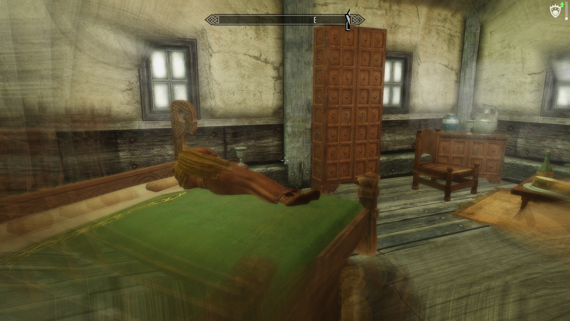 He wakes up and Jenassa asks him a question that I don’t quite catch, but whatever it is, he replies in that funny Solitude accent. He babbles on for a few minutes as I try to concentrate. For some reason it takes a lot of effort, but finally I understand part of what he’s saying.