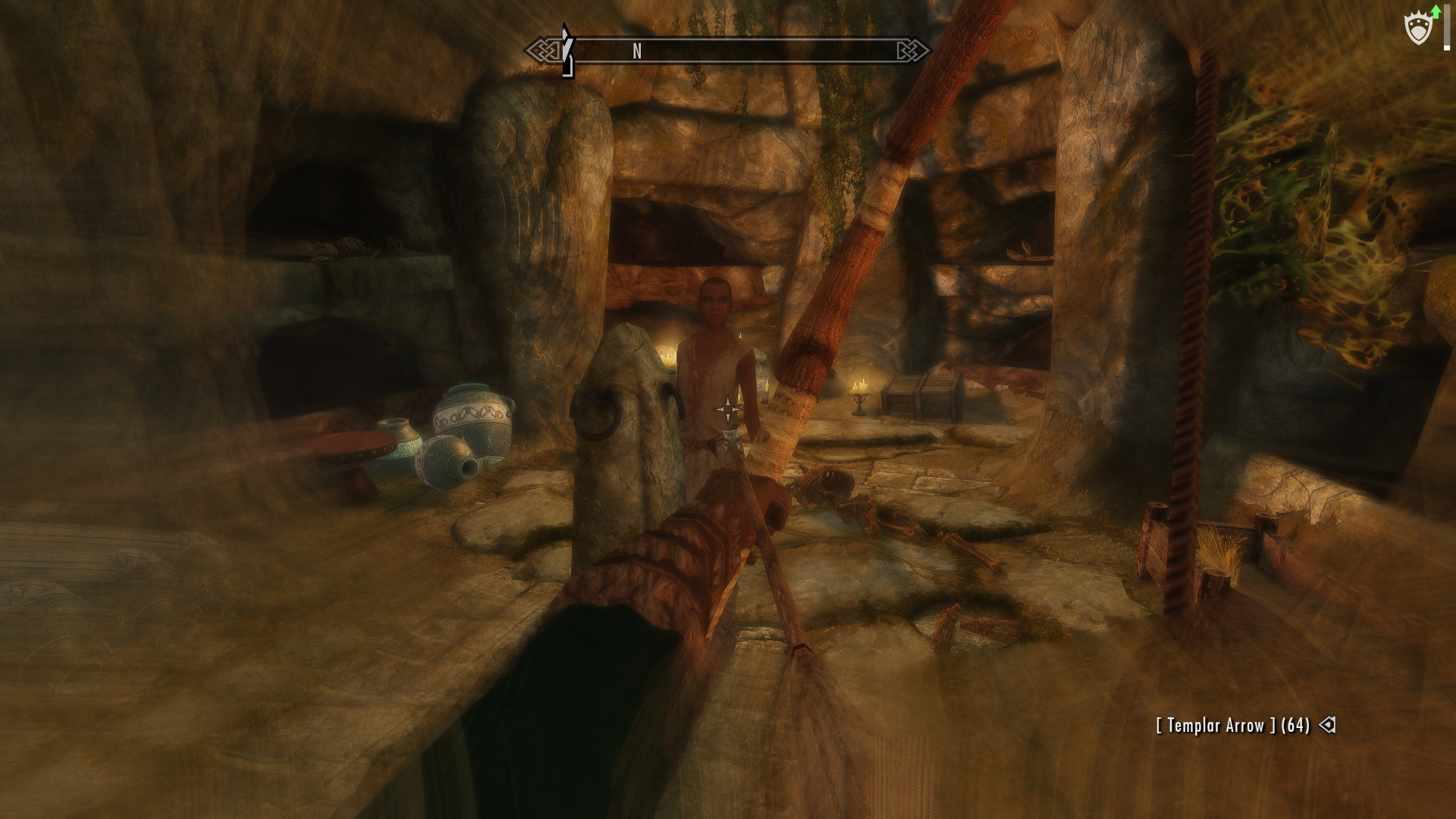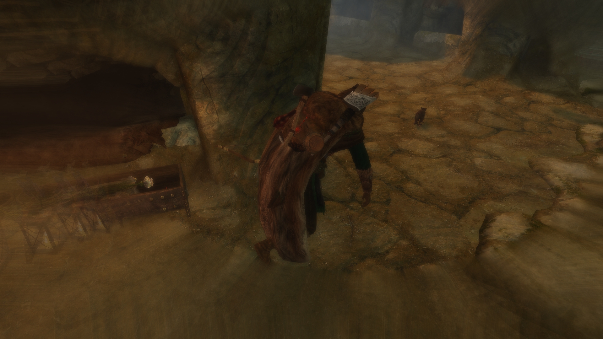 Okay, so that wasn’t the type of vermin I’m trying to eliminate. I manage to extract an arrow from my quiver — how’d this get in such an awkward tangle?! — and after a few tries I nock it onto my bowstring. There. Now when I see an undead, I’ll be ready for it.