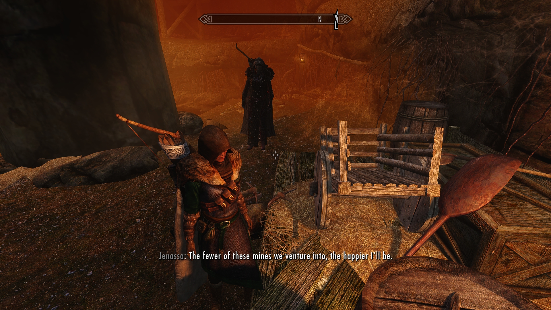 Admittedly, I’m disinclined to deal with more spiders.  I’m about to politely sympathize and let the town guards handle it, but the blacksmith says that the guards have been completely useless, and unless the mine is reopened, the village will be sunk for good.  I glance at Jenassa and heave a sigh.