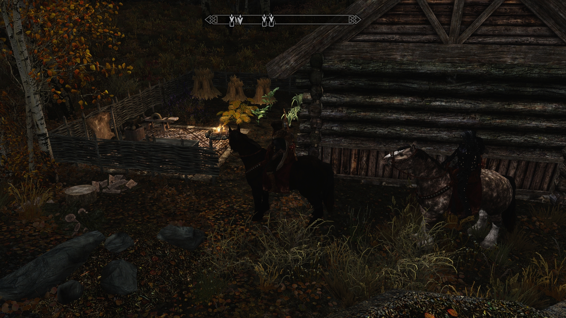 By the time we leave the blacksmith’s place, night has fallen.  Fortunately we don’t have to ride very far, and soon we find the ranger cabin in the woods on the other side of town.   It’s not far off the road, and it’s a handy distance from the village.