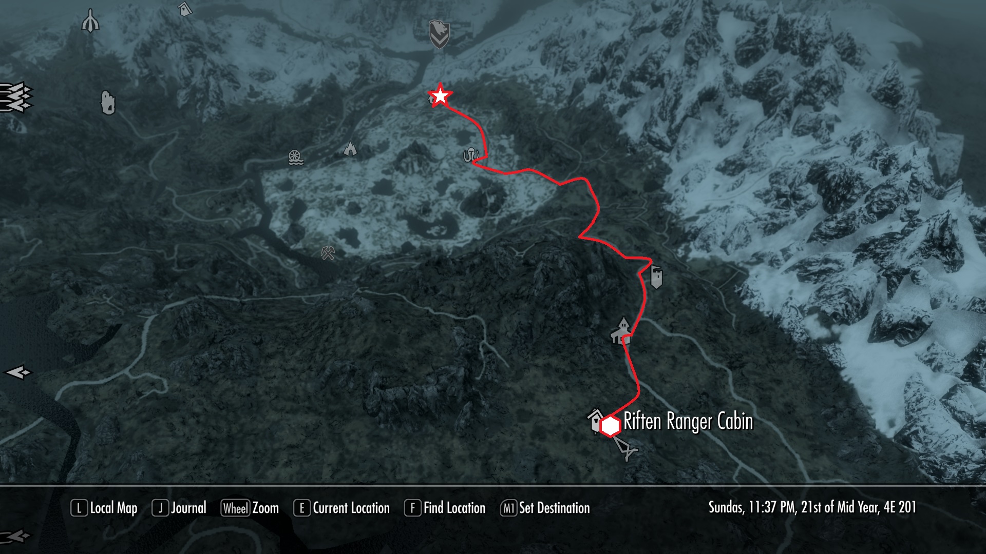 With our encouragement and some mead, he tells us what’s troubling him.  Apparently the murdered guards are only the tip of the iceberg.  It seems that before the war started, each hold had a pair of rangers who lived in small hunting cabins.  Their duty was to roam the wilds, hunt down any dangerous beasts and bandits that might threaten the townsfolk, and establish a safe perimeter around the smaller settlements that weren’t as well-protected as the cities.  Shor’s Stone was one of these settlements, and the rangers of the Rift did a decent job of protecting the village.