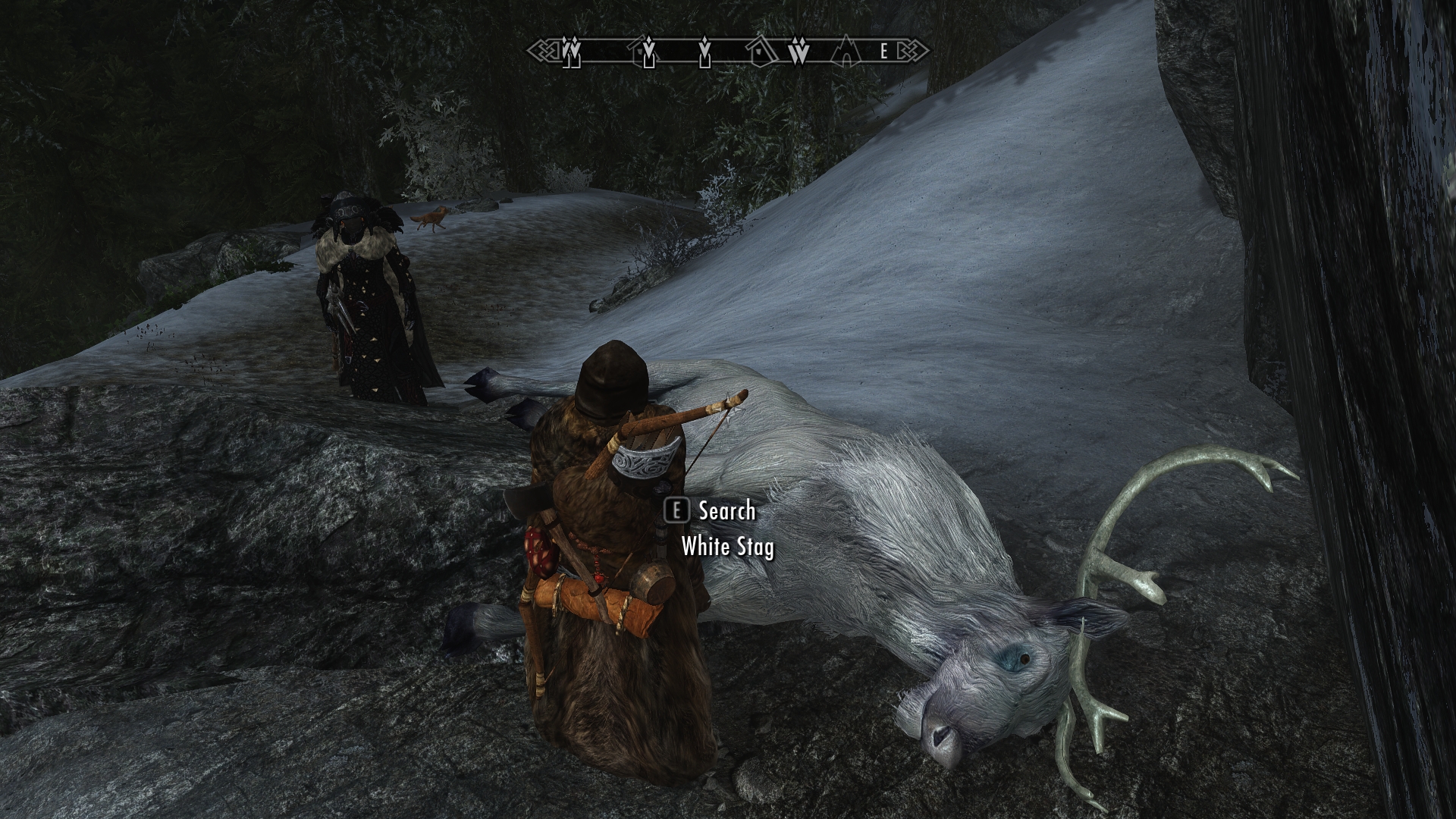 Now that the excitement of the hunt is over, I notice that the icy wind is absolutely frigid up at this elevation.  I grab my hunting knife, preparing to quickly skin the beast before we leave, when suddenly we’re faced by a powerful glowing presence that takes on the shape of the stag.