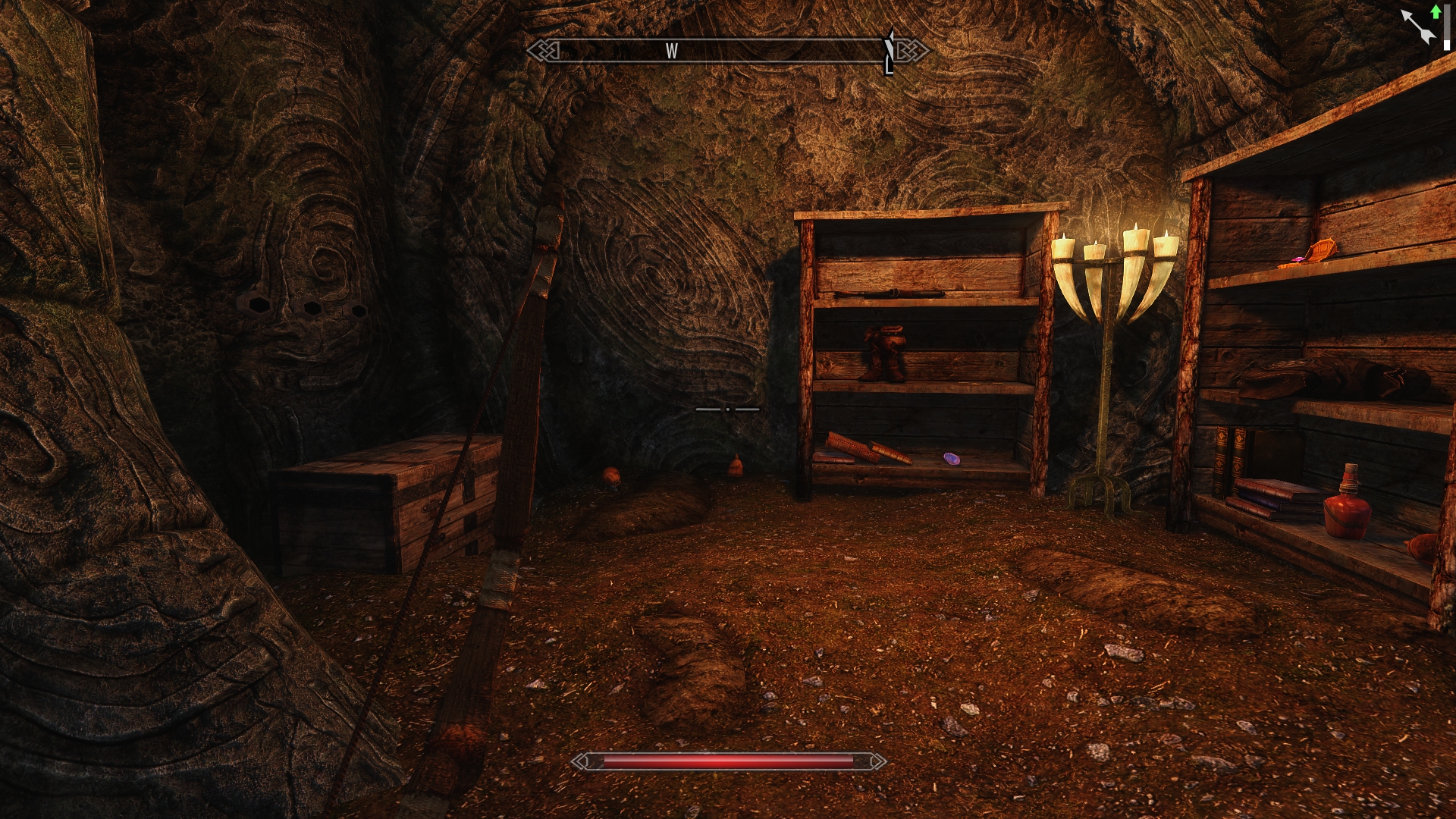 Dismounting, we lead our horses out of the wind and approach the entrance. The door of the house is locked up tight, but we don’t have the luxury of common courtesy, so I extract a lockpick from one of my pouches. After several attempts with numb fingers, I finally manage to open the door, and Jenassa and I waste no time getting inside before we freeze.