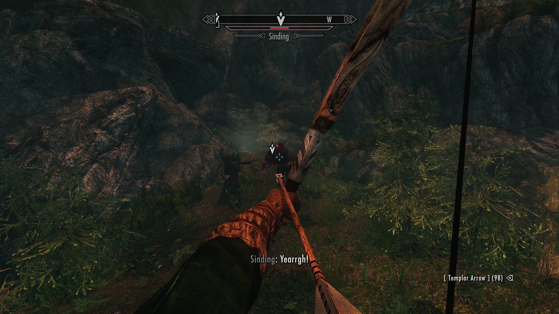 We continue on, stumbling on other bodies that are more or less intact. We loot any items that can be removed quietly, and make our way deeper into the trees. I crouch again and keep a tight grip on my bow. This grove isn’t all that big, so Sinding must be close.