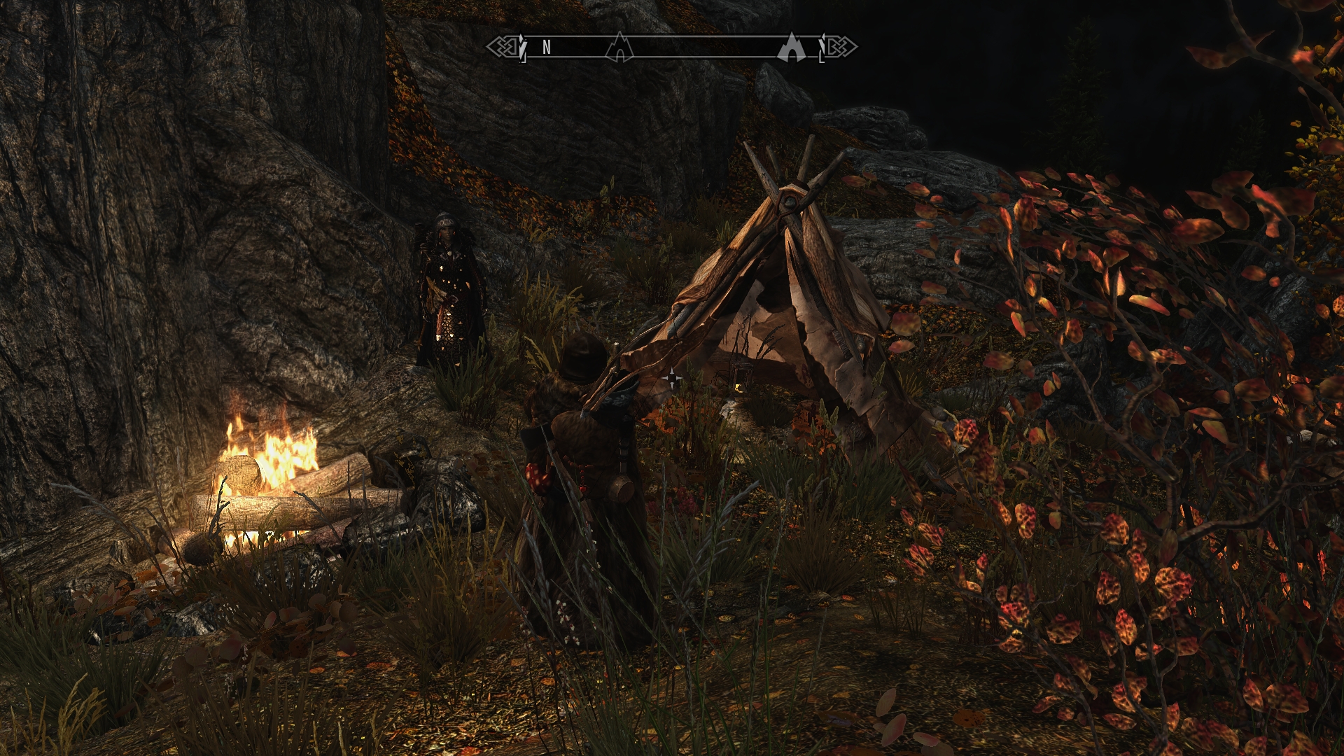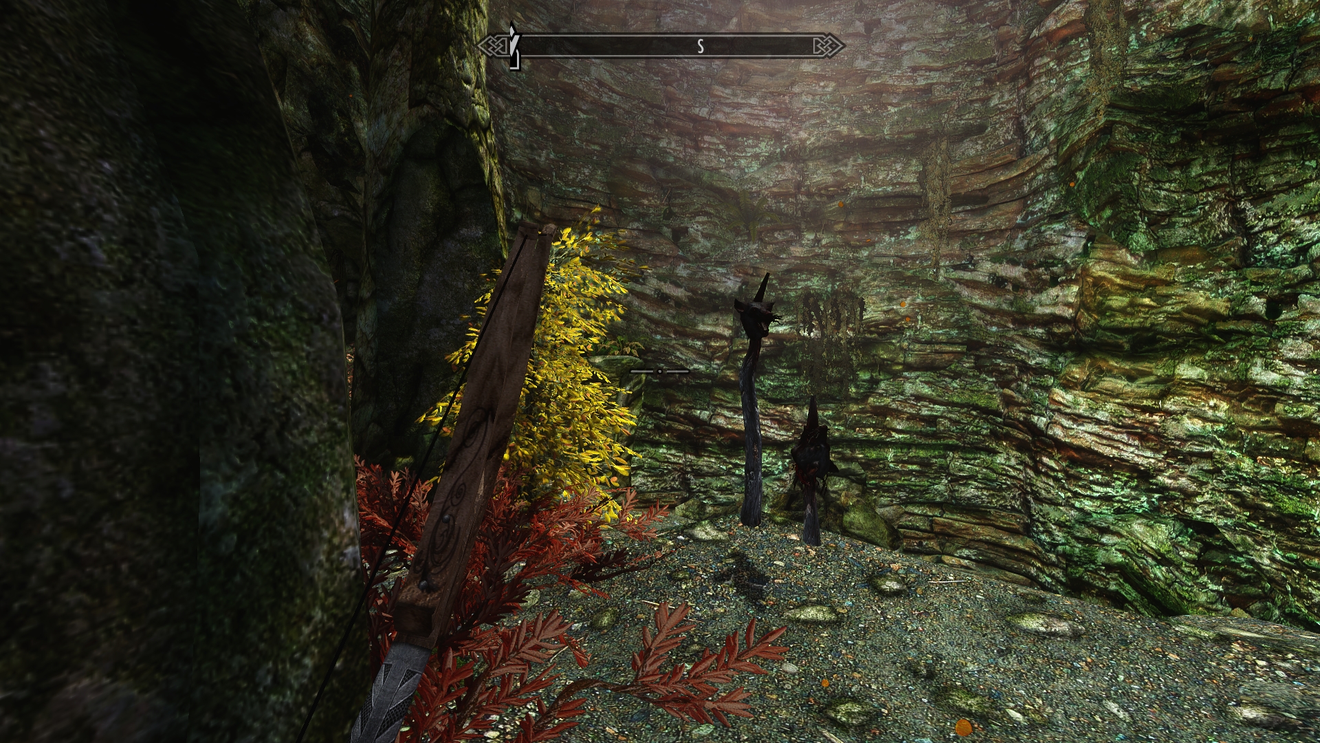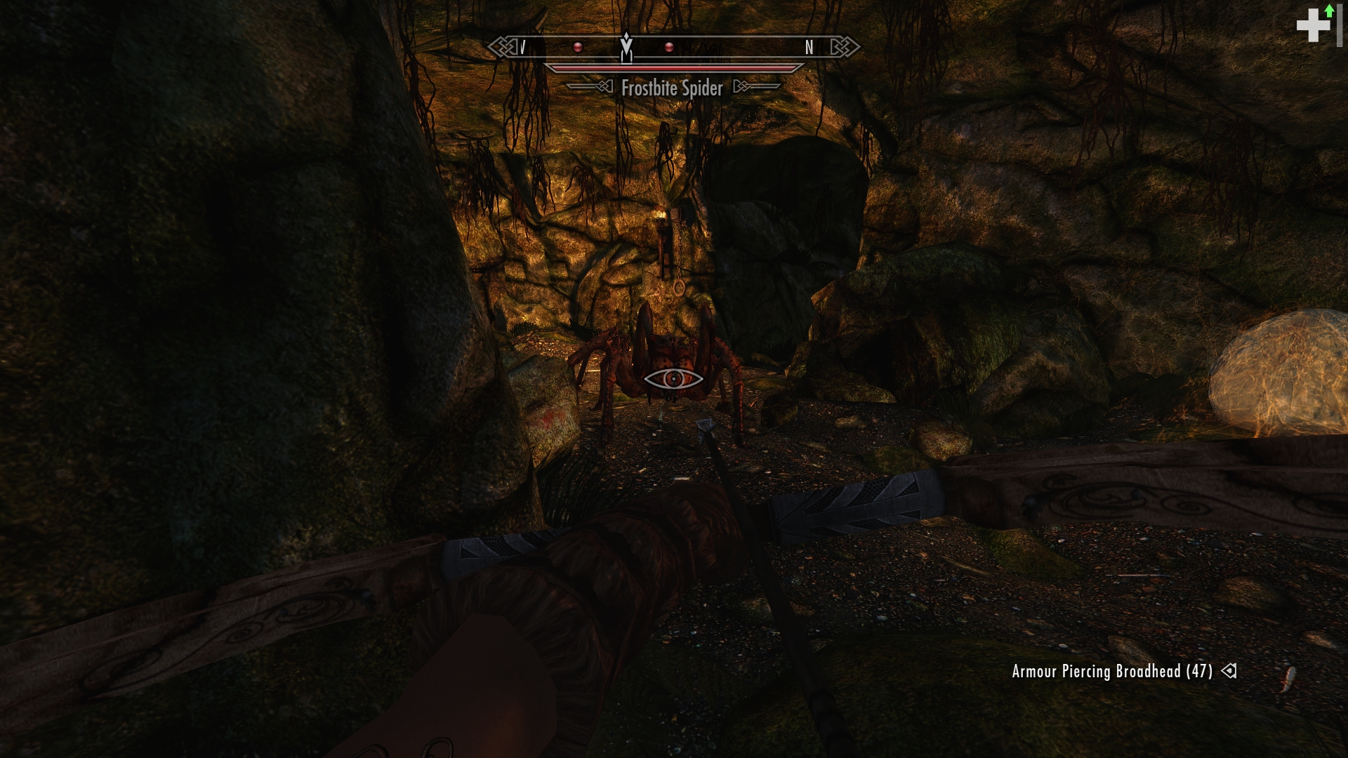 Up ahead, we hear noises that prove the cavern is indeed occupied by animals — but far from hearing the deep growl of bears or the strident yowl of sabre cats, these noises are more like high-pitched squeaks. Great. We seem to have found a cave full of skeevers. I can’t imagine more useless prey for a couple of relatively experienced hunters, and this certainly won’t help with our assignment from Aela.