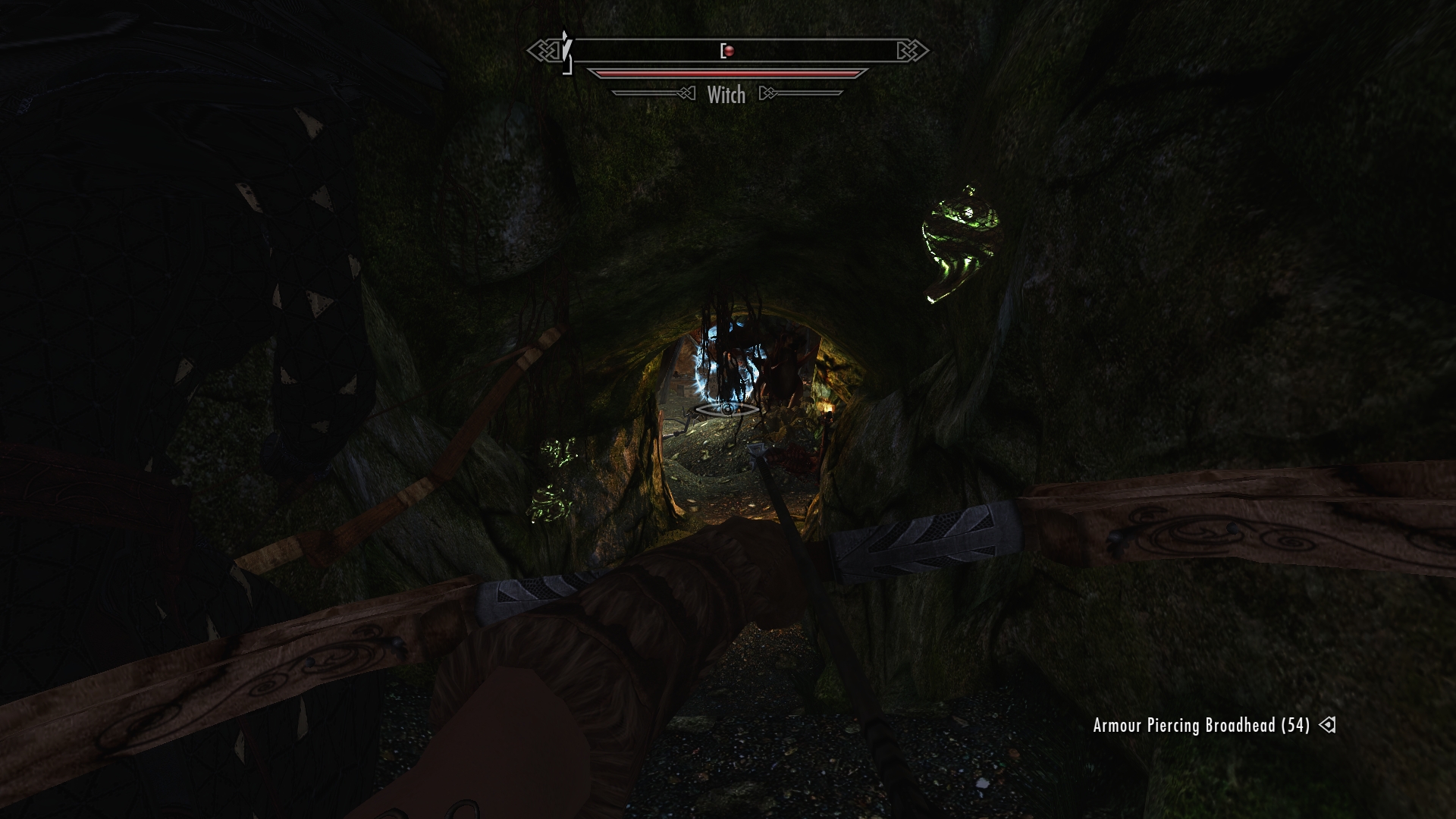 I raise my bow and try to get a clear shot on either the witch or the hagraven, but the sightlines are problematic at best. It also doesn’t help that both targets are constantly moving, and the last thing I want to do is hit the prisoner in the cage. We don’t need to deal with any additional enemies if we can avoid it.