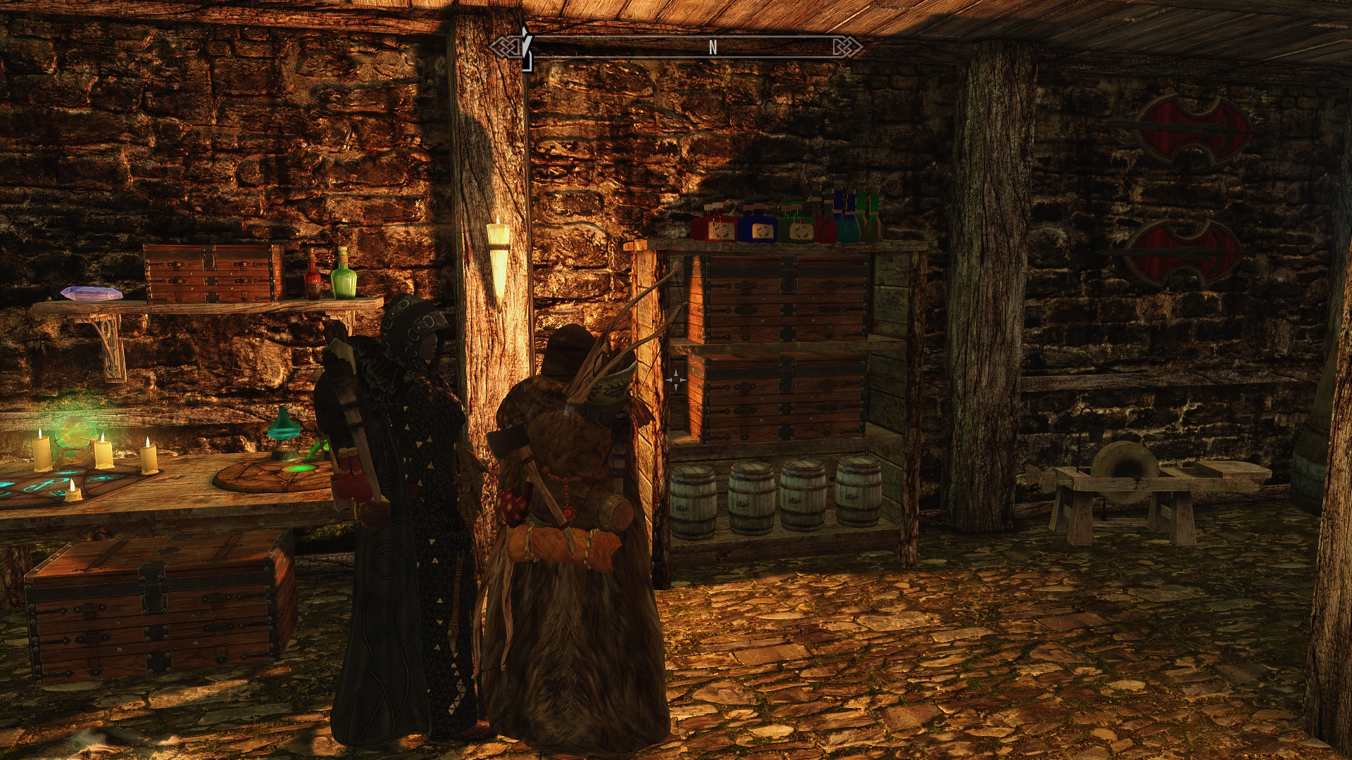 Following her to the other side of the room, I stand back as she opens a trapdoor leading into the basement.  It’s somewhat musty down there, but also cool and dry, ideal for preserving a wide variety of reagents.  Well-stocked shelves contain various containers of alchemy ingredients as well as a few potions, but there’s nothing stored here that we don’t have already.
