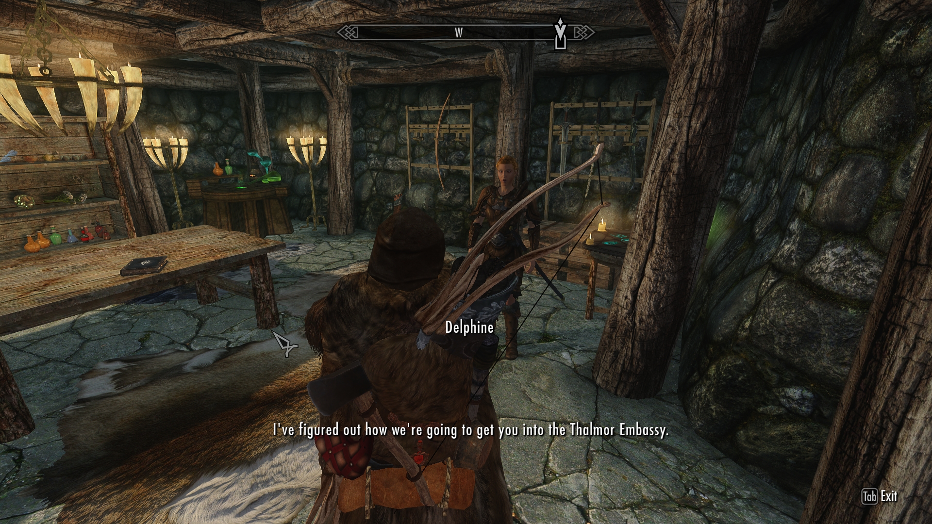 There’s no chance to get even a single word in edgewise. As she rapidly outlines a complicated strategy for me to attend a Thalmor gathering so I can steal some diplomatic papers, my mind is churning. Why would a Thalmor ambassador make a habit of throwing parties at the Skyrim embassy? What does Delphine expect to find in the ambassador’s files? How did her wood elf colleague manage to get a catering job with the Thalmor? And most importantly — what in Oblivion does any of this have to do with dragons?!