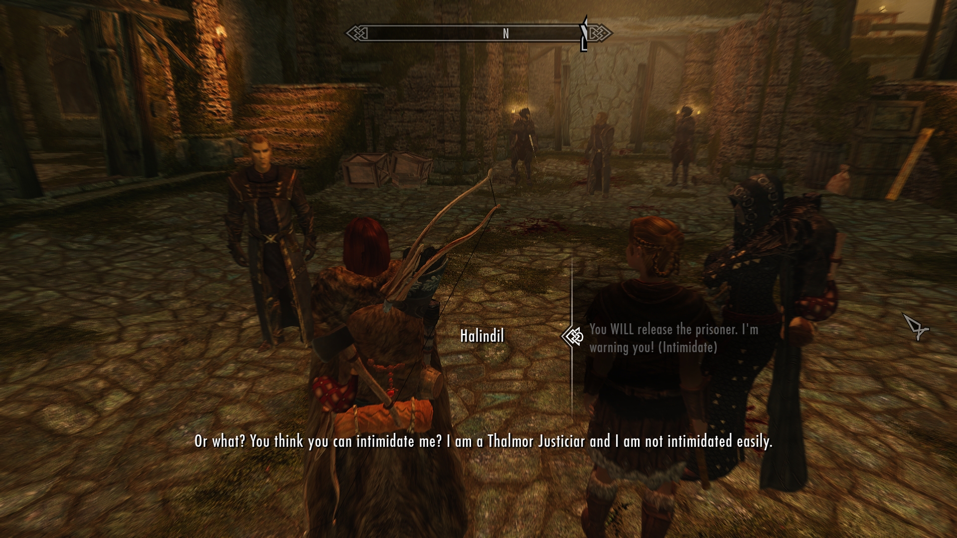 Great. So I just left an innkeeper back in Riverwood who’s simply itching to send me on a dangerous mission involving the Thalmor, only to find another group — armed to the teeth, no less — who expects me to do the same. I must say, I’m getting pretty tired of being conscripted for all the risky work. Have you people never heard of consent? What in Oblivion do you need me for? Do I have patsy written across my forehead?!