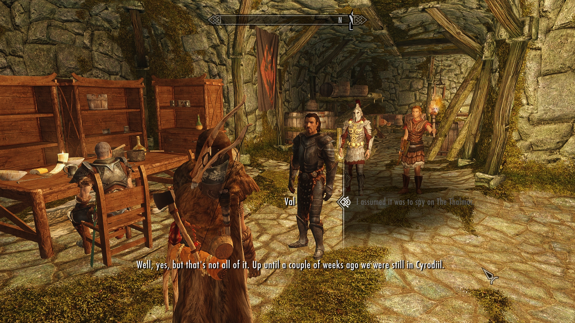 Marcus then asks his friend to fill us in. Valerius ends his conversation with the pair in Imperial uniform and turns toward us. But instead of an explanation, he asks if Jenassa and I have ever thought about why he and his soldiers originally came to Helgen.
