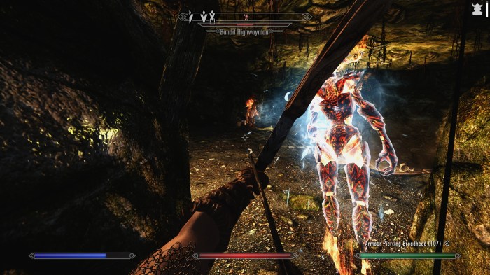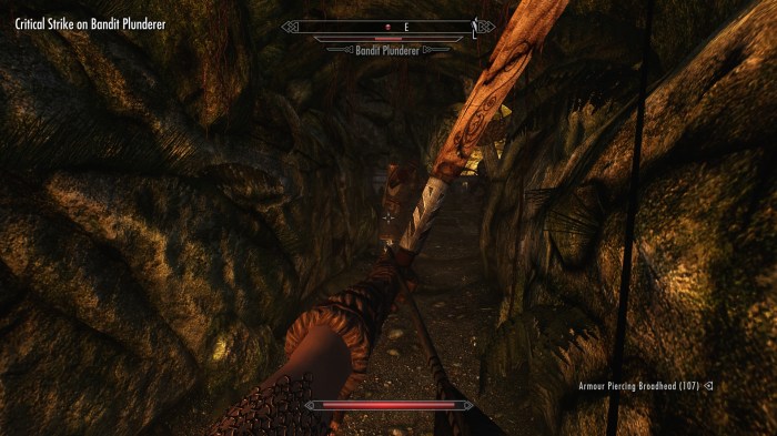 Now that we know we’re in the right place, it’s just a matter of removing the usual vermin between us and our goal. Drawing my bow, I take out the first bandit in a single shot.