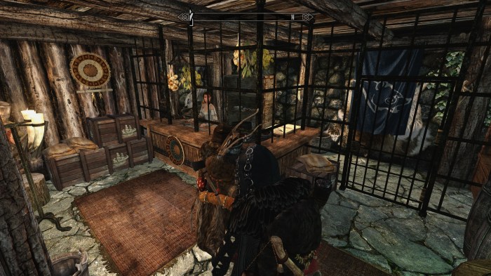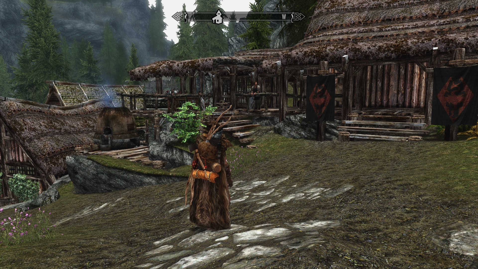As we exit the shop, Jenassa and I start discussing our travel plans. Now that we know we don’t have to be in Solitude by tonight, we decide to take care of the assignment given to us by the Companions first. As I recall, it was something about clearing out pesky beasts from a cave. Since we just dispatched a dragon last night, I doubt it’ll be much of a problem.